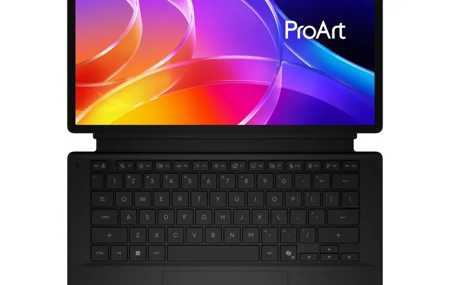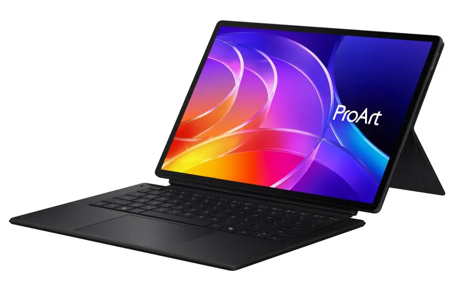 ProArt PZ14 Această tabletă detașabilă (2-în-1) cântărește doar 0,79 kg li are o grosime de 9 mm. Este construită pentru rezistență ridicată, având certificare militară și carcasă din aluminiu prelucrat CNC. La interior, procesorul Snapdragon X2 Elite cu 18 nuclee și NPU de 80 TOPS asigură performanța, în timp ce ecranul OLED 3K validat Pantone oferă fidelitate vizuală maximă.