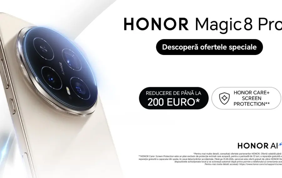 Lansarea vine însoțită de o campanie de reduceri agresivă, valabilă până la sfârșitul lunii ianuarie. Clienții care achiziționează modelul de vârf, HONOR Magic8 Pro, beneficiază de o reducere substanțială de până la 200 de euro. Mai mult, pentru ambele modele din serie, producătorul oferă pachetul „HONOR Care+ Screen Protection”. Acest serviciu asigură, timp de un an, o reparație gratuită atât pentru ecran, cât și pentru capacul din spate, în cazul unui accident. Această protecție extra se va aplica dispozitivelelor activate până la 31 martie 2026.