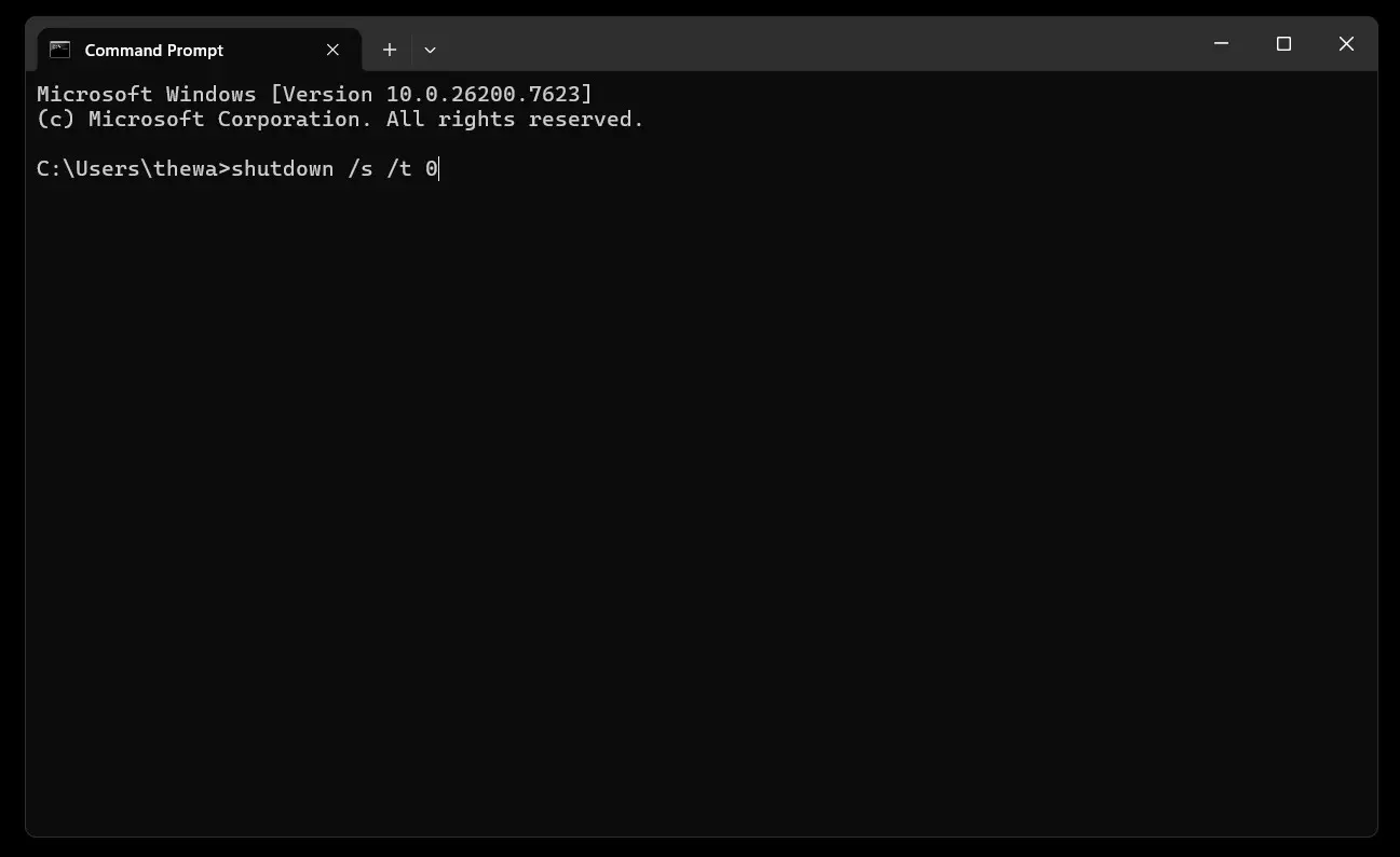 O soluție temporară pentru cei care se află în această situație este să înceapă procesul de oprire prin comenzi de terminal (CMD sau PowerShell). Nu trebuie decât să deschizi Command Prompt sau PowerShell (Windows+R și comanda cmd, sau click dreapta pe butonul start și selectarea opțiunii Terminal). Comanda de oprire a PC-ului este „shutdown /s /t 0”.