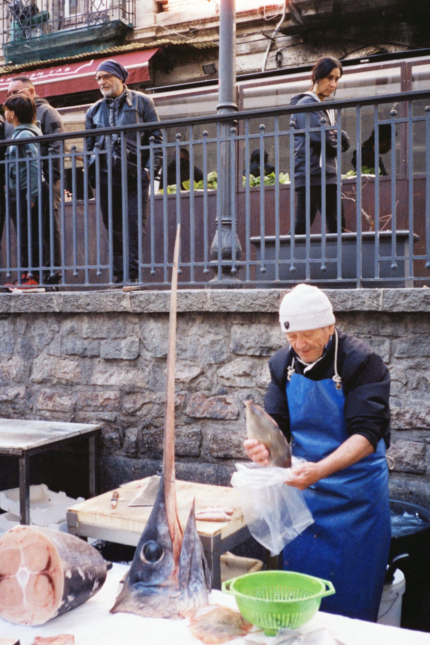 Că ești fotograf sau nu, ești forțat să te adaptezi haosului. Traficul e infernal, oamenii gesticulează, iar piața de pește e un teatru în mișcare. Nu poți aștepta momentul perfect în Catania, pentru că el nu stă la poză. Momentul e acum. E o fracțiune de secundă. Și aici intervine arta filmului: te obligă să fii prezent, să anticipezi, să simți ritmul străzii înainte să duci aparatul la ochi.