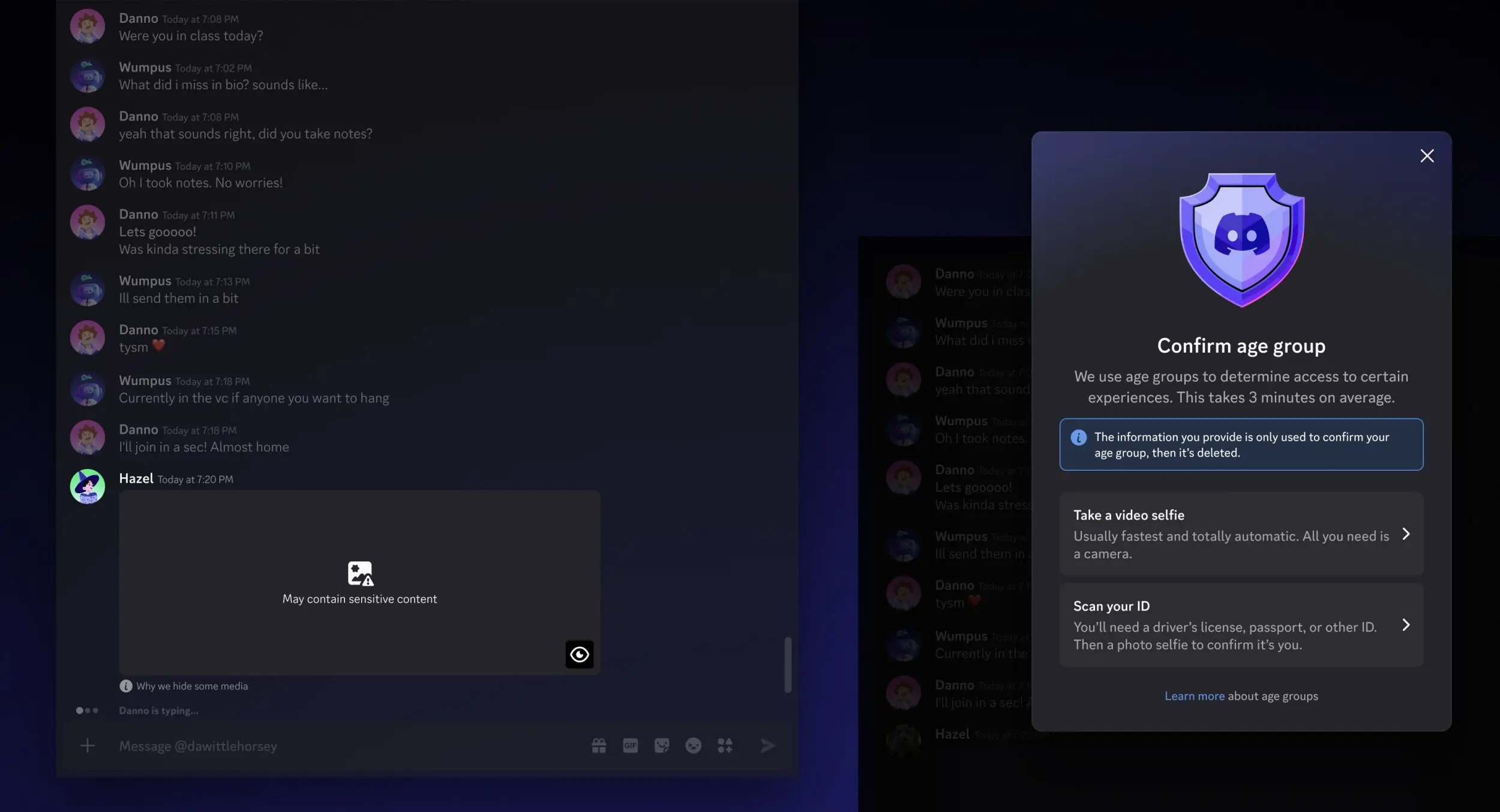 Pentru a beneficia de funcționalitățile complete ale platformei, utilizatorii vor trebui să parcurgă un proces de verificare a vârstei. Metodele acceptate vor include scanarea facială sau prezentarea unui act de identitate. Totuși, reprezentanții companiei sugerează că nu toți utilizatorii vor fi obligați să trimită documente. Savannah Badalich, șefa departamentului global de politici de produs al Discord, a explicat că platforma folosește un model de deducere a vârstei.