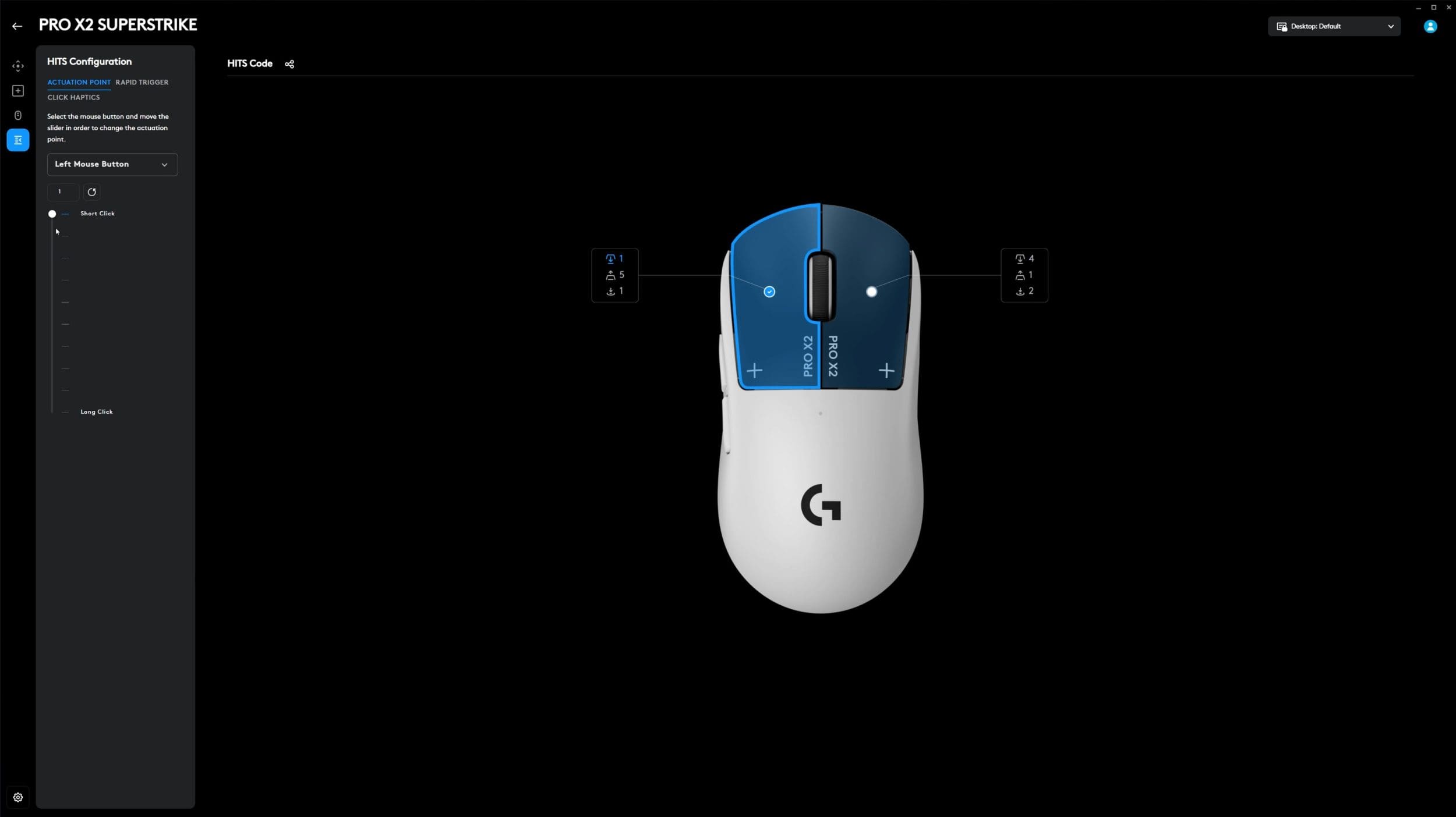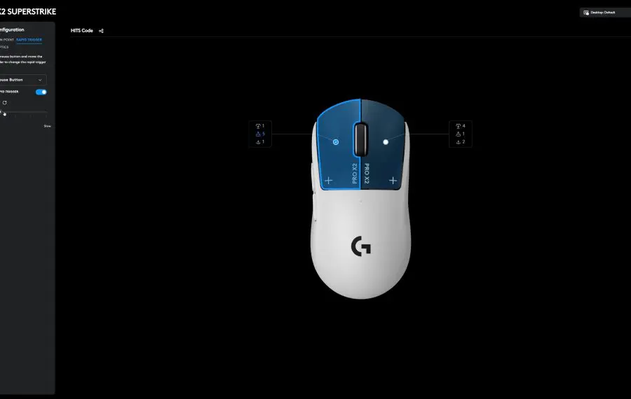 Poți seta prin intermediul aplicației G Hub (sau aplicației Onboard Memory Manager) sensibilitatea la apăsare de la 1 la 10, 1 mutând punctul de actuare la o atingere foarte subtilă, în timp ce 5 simulează apăsarea unui buton standard. Cei care vor un mouse care necesită o apăsare cât mai puternică, pot seta valori peste 5. Dar asta nu ar face o diferență atât de mare dacă nu ar exista și funcția de „Rapid Trigger”, și ea personalizabilă. Aceasta are 5 trepte și controlează cât de repede se resetează butonul odată ce a fost apăsat. Așa poți să apeși din nou butonul rapid de multe ori la rând fără ca butonul fizic să se reseteze așa cum se întâmplă cu un switch mecanic. Desigur, și vibrațiile pot fi setate pe 5 trepte, pentru o vibrație mai subtilă, sau mai puternică. Și toate acestea pot fi setate individual pentru fiecare click în parte, deci poți avea un buton mai sensibil pentru foc și unul mai rigid pentru atunci când pui ținta la sniper.