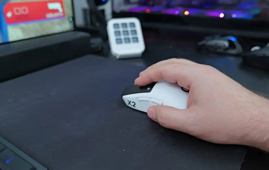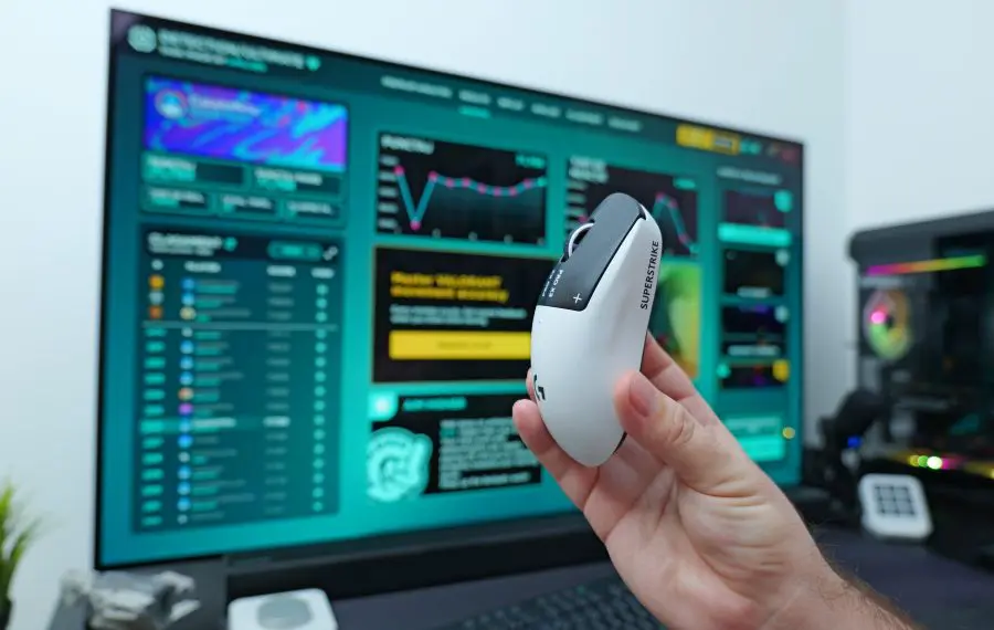 Și încă ceva… autonomia. Dacă vrei să folosești acest mouse la maximum, îl vei încărca destul de des. Noul sistem HITS scade puțin autonomia față de Superlight 2, întrucât apar vibrațiile la fiecare apăsare. Logitech spune că diferența este de 5 ore de utilizare continuă, de la 95 la 90 pe Superstrike, dar acea valoare este măsurată la 1000 Hz. La 8000 Hz polling rate, mouse-ul se consumă la fiecare 2-3 zile dacă este folosit și pentru productivitate și pentru gaming pentru câteva ore pe zi.