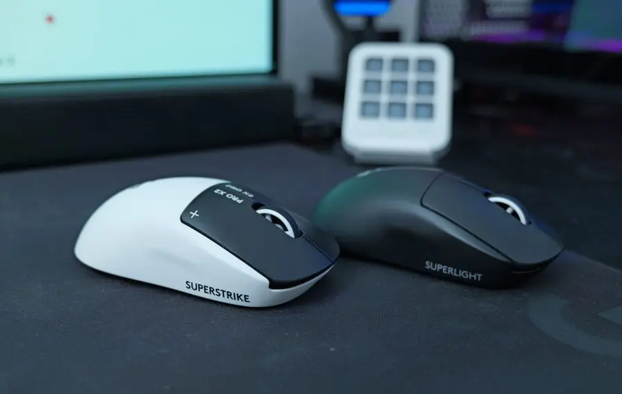 Apoi, forma a rămas identică cu cea de pe modelele Pro X Superlight. Unul dintre motive este să permită jucătorilor care folosesc deja un Logitech G Pro să facă trecerea rapid, fără să mai treacă printr-o perioadă de acomodare. Apoi, forma rămnâne la fel pentru că în mare parte noul Superstrike păstrează toate caracterisiticile lui Superlight 2. Are doar un gram în plus la greutate, pentru un total de 61, are o schemă de culori specială cu carcasă albă și butoane negre, probabil pentru a putea fi ușor de diferențiat, și schimbă doar butoanele pentru click-uri cu noua tehnologie HITS.
