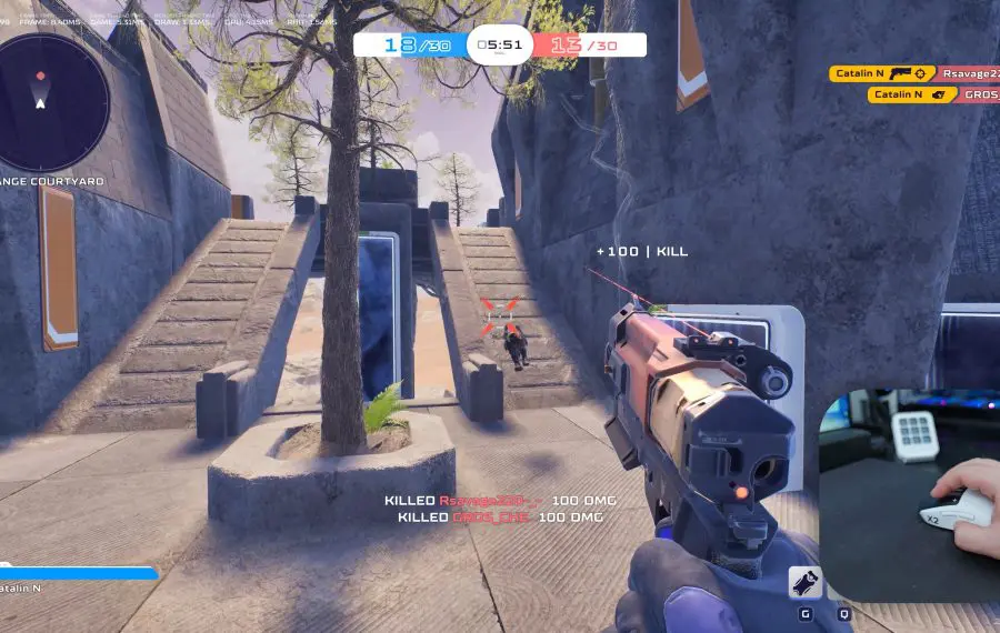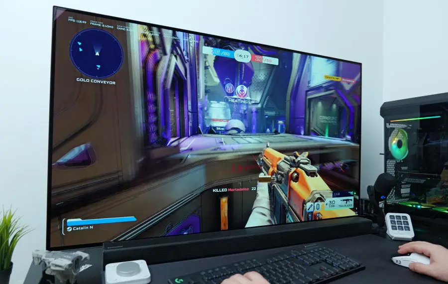 Și pot să confirm că asta se simte și în jocuri. Am ales câteva shootere în care să testez G Pro X2 Superstrike și am fost surprins de faptul că în ciuda lipsei de antrenament, am reușit să fiu constant printre primii în clasamente. Cel mai mult am jucat zilele astea Splitgate Arena Reloaded și pot spune că sunt șocat de cât de bine se împacă acest mouse cu acest stil de joc. Vorbim despre acțiune rapidă, unde fiecare milisecundă contează. Ce face acest mouse este să se asigure că dacă tu și un adversar ați apăsat în același timp pe buton, tu, având 20-30 milisecunde în minus, vei face acțiunea mai rapid. Nu pot spune că ochii sau creierul meu pot depista diferența aceea, dar jocul cu siguranță poate. Și că tot vorbim despre Splitgate, vă recomand să îl încercați, este un joc inspirat de modurile și armele din Halo, dar cu viteza din Call of Duty și hărți parcă desprinse din era de glorie a Quake și Unreal Tournament. Sunt cam puțini jucători online, dar mie mi se pare că merită. Mai e și gratuit.