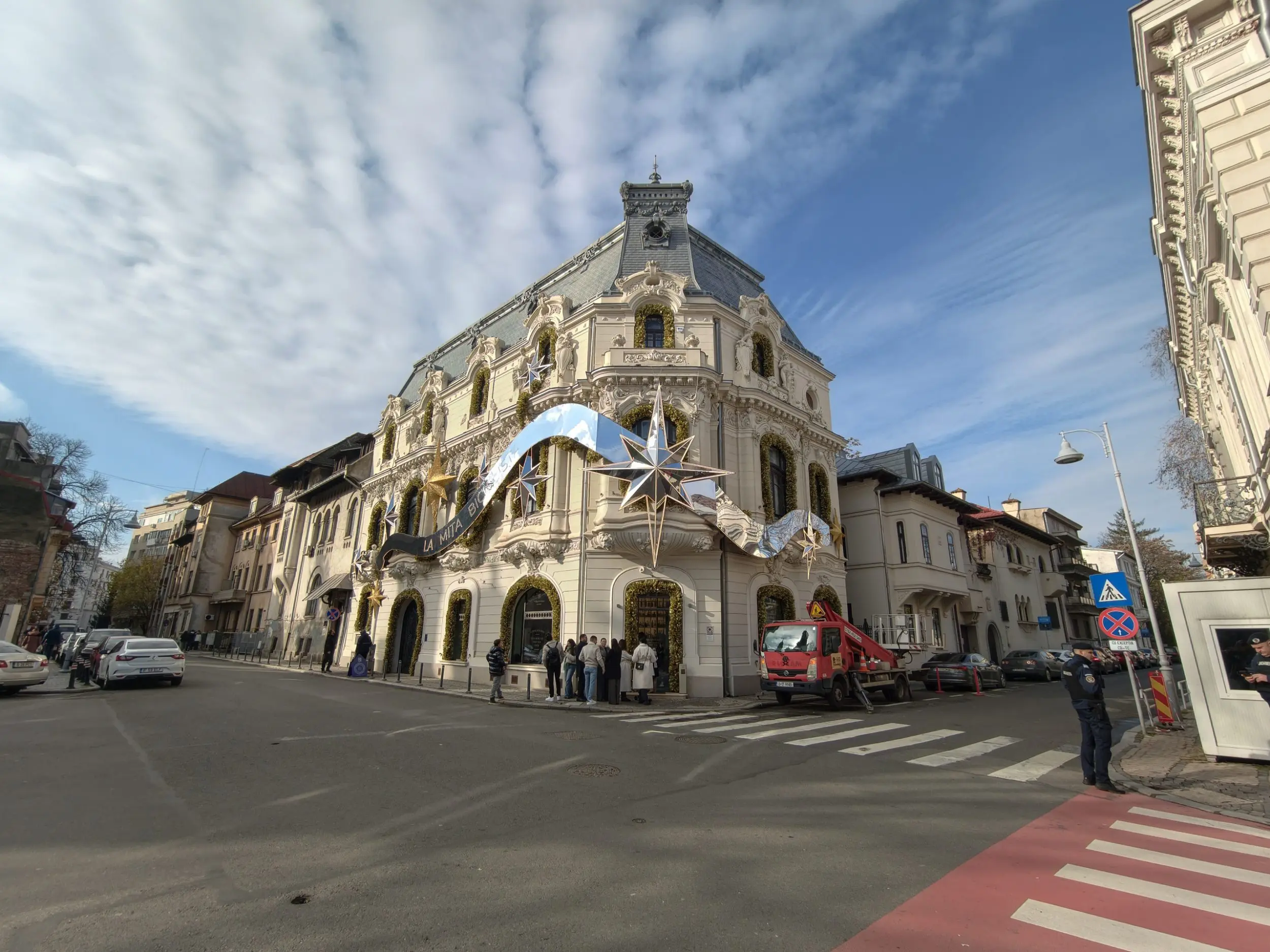 Dar este impresionant cât de departe te poți duce cu zoom-ul acum pe un telefon, și cu și fără lentila externă. X300 Pro poate captura niște detalii de la distanță foarte mare. A realizat fotografii cu publicul de pe partea cealaltă a străzii care ar putea fi folosite lejer pentru articole online de la paradă, fără să pară că sunt cu telefonul. Am surprins detalii impresionante de pe clădirile de pe Calea Victoriei de pe partea cealaltă a străzii, la zeci de metri distanță.