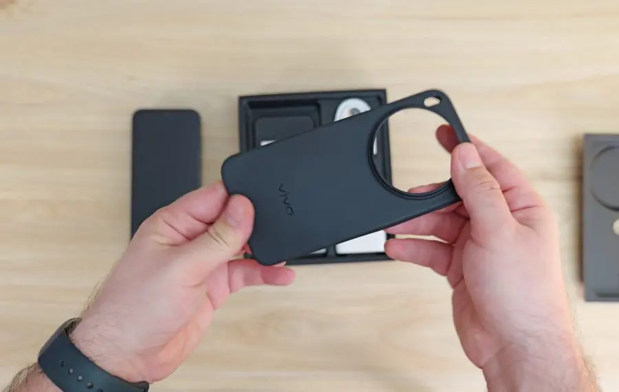 Totul pornește de la o husă realizată în parteneriat cu Pgytech. Aceasta oferă o protecție mult mai bună telefonului decât husa din pachet, fiind realizată dintr-un plastic rigid. Ba chiar este atat de precisă, încât este și greu să o dai jos. Husa are și un stand care permite poziționarea telefonului în mod vertical sau orizontal pe masă, un bonus binevenit. În pachetul husei se mai regăsesc și alte câteva accesorii: mai multe inele pentru modulul de cameră, unele decorative, dar și unul practic, care permite montarea de filtre ND și nu ne oprim aici. Există un grip detașabil care include o baterie și butoane de control precum declanșator în două trepte, zoom și o rotiță de control, cât și un șnur cu sistem quick release pentru a purta telefonul ca pe o adevărată cameră foto.
