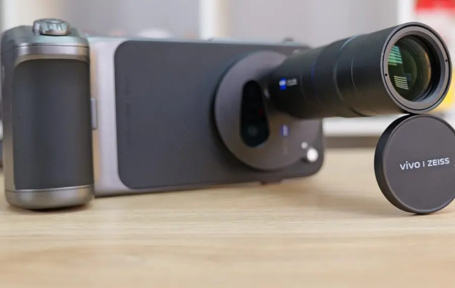 Dar nu ne oprim aici. Kit-ul de fotografie este completat de alte două accesorii: o lentilă ZEISS cu zoom optic 2.25x și montura pentru aceasta, compatibilă cu husa. Sunt sigur că veți spune, doar zoom 2.25x? Ei bine da, pentru că această lentilă nu extinde zoom-ul camerei principale, ci extinde camera cu zoom. Astfel, de la zoom-ul 3.7x optic pe care îl are telefonul nativ, mărim de 2,25 de ori, până pe la un zoom 8x, iar de acolo se mai poate face și crop pe senzor, că avem de unde.