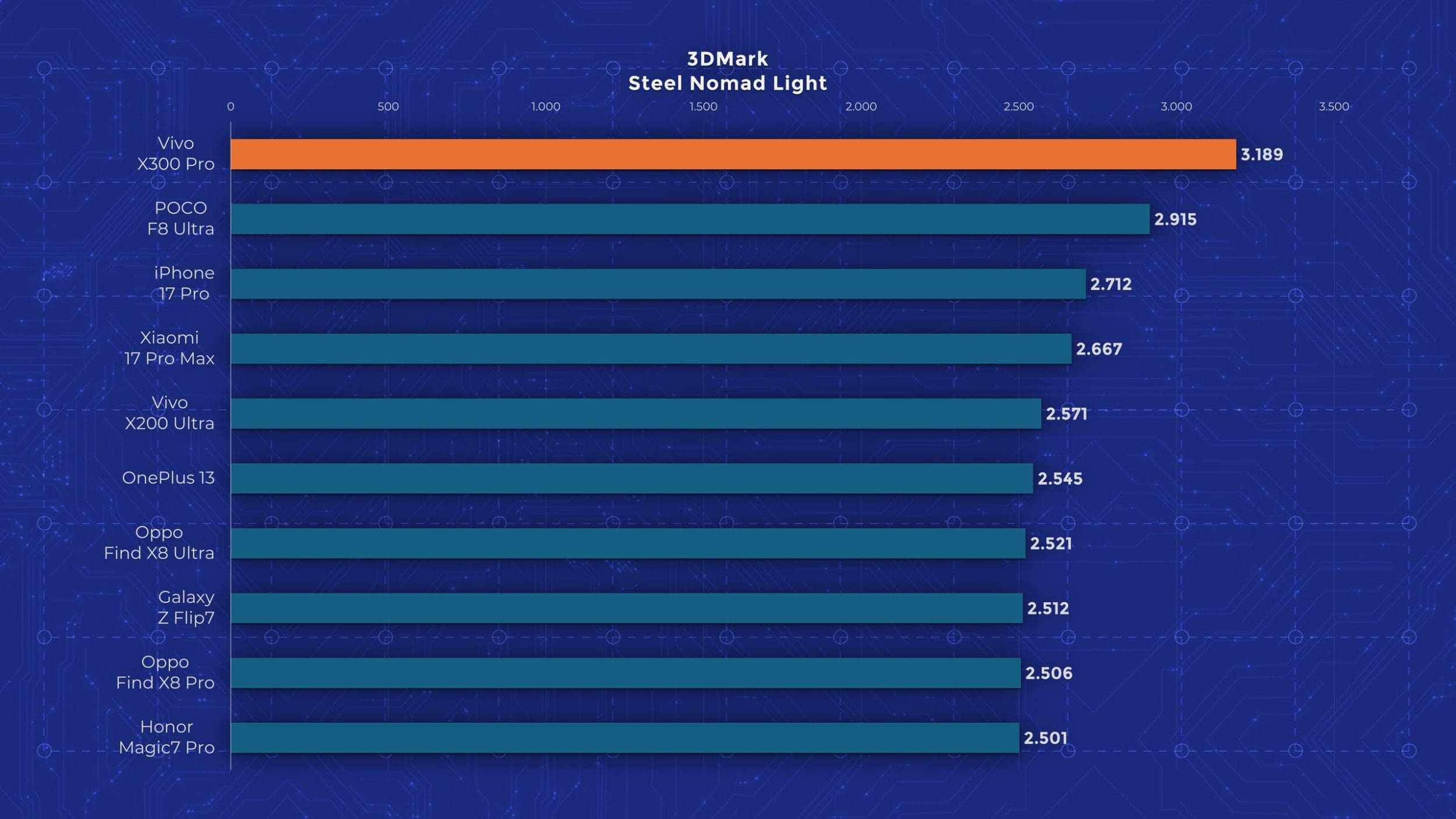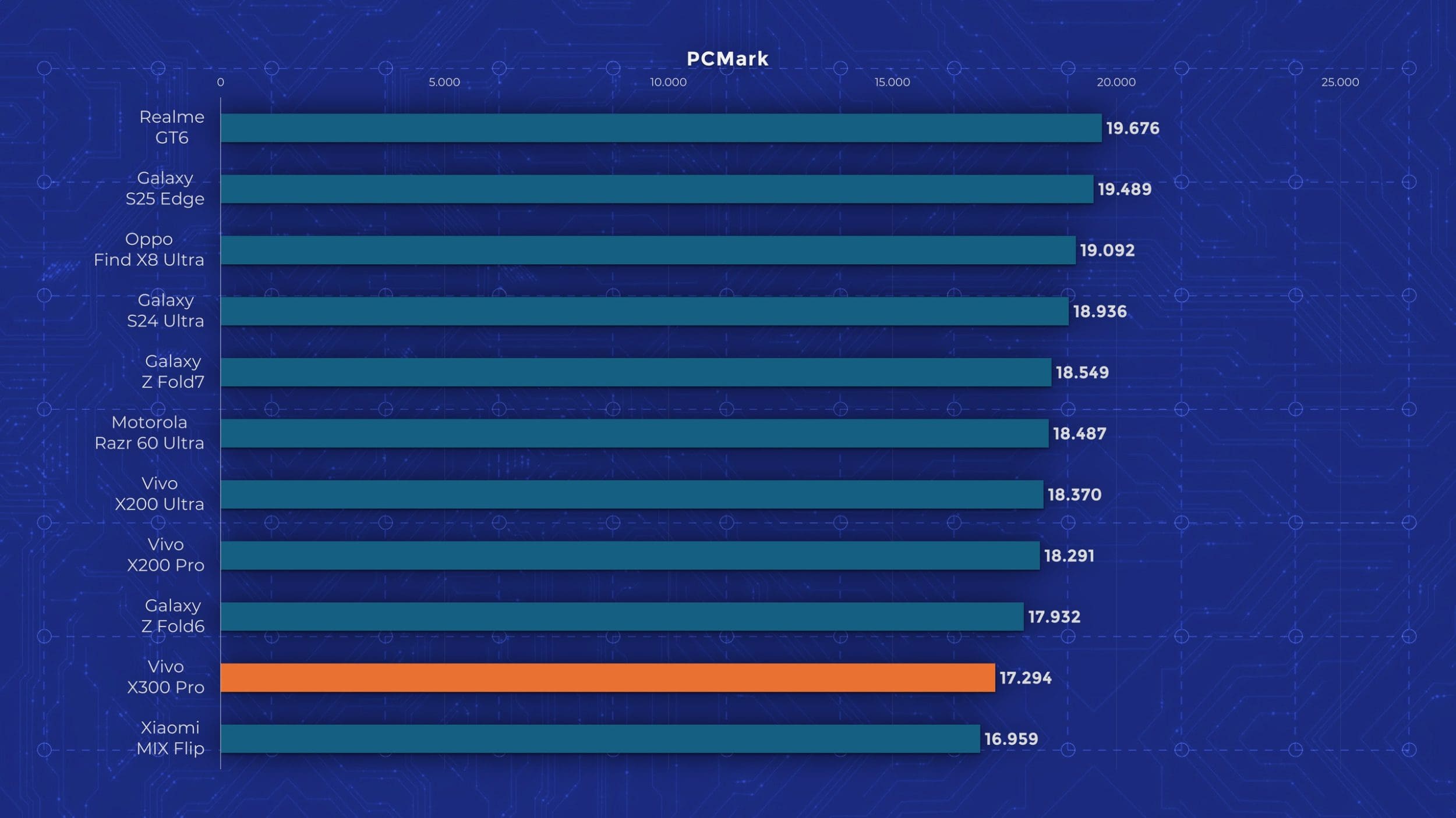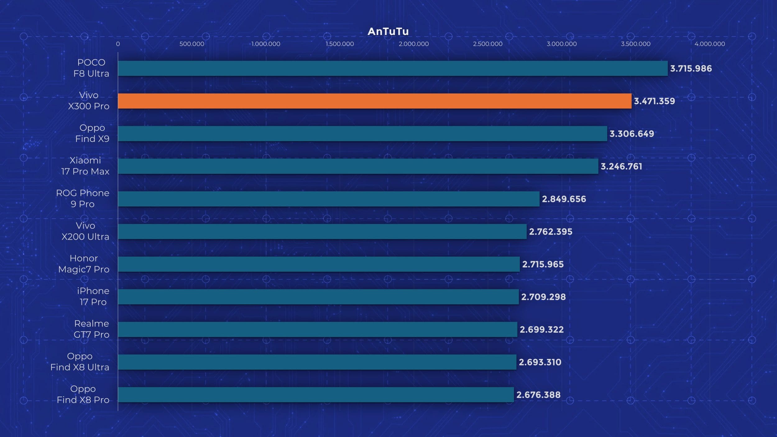 La nivel de performanță vedem însă un aport de la an la an. Cel mai mare upgrade pe care îl primește Vivo X300 Pro este la nivelul procesorului, fiind folosit noul Dimensity 9500, model pe care l-am mai testat și pe „vărul” lui, Oppo Find X9. Aveți un review aici pe canal. Acest procesor demonstrează din nou faptul că Mediatek a recuperat mult teren și chiar iese învingător peste Apple A19 Pro și Snapdragon 8 Elite Gen 5 în anumite teste. Așa cum era de așteptat, X300 Pro nu are o răcire foarte avansată, fiind un telefon concentrat pe partea foto. În testele de stres păstrează între 30 și 50% din performanță, decent dar nu ideal.
