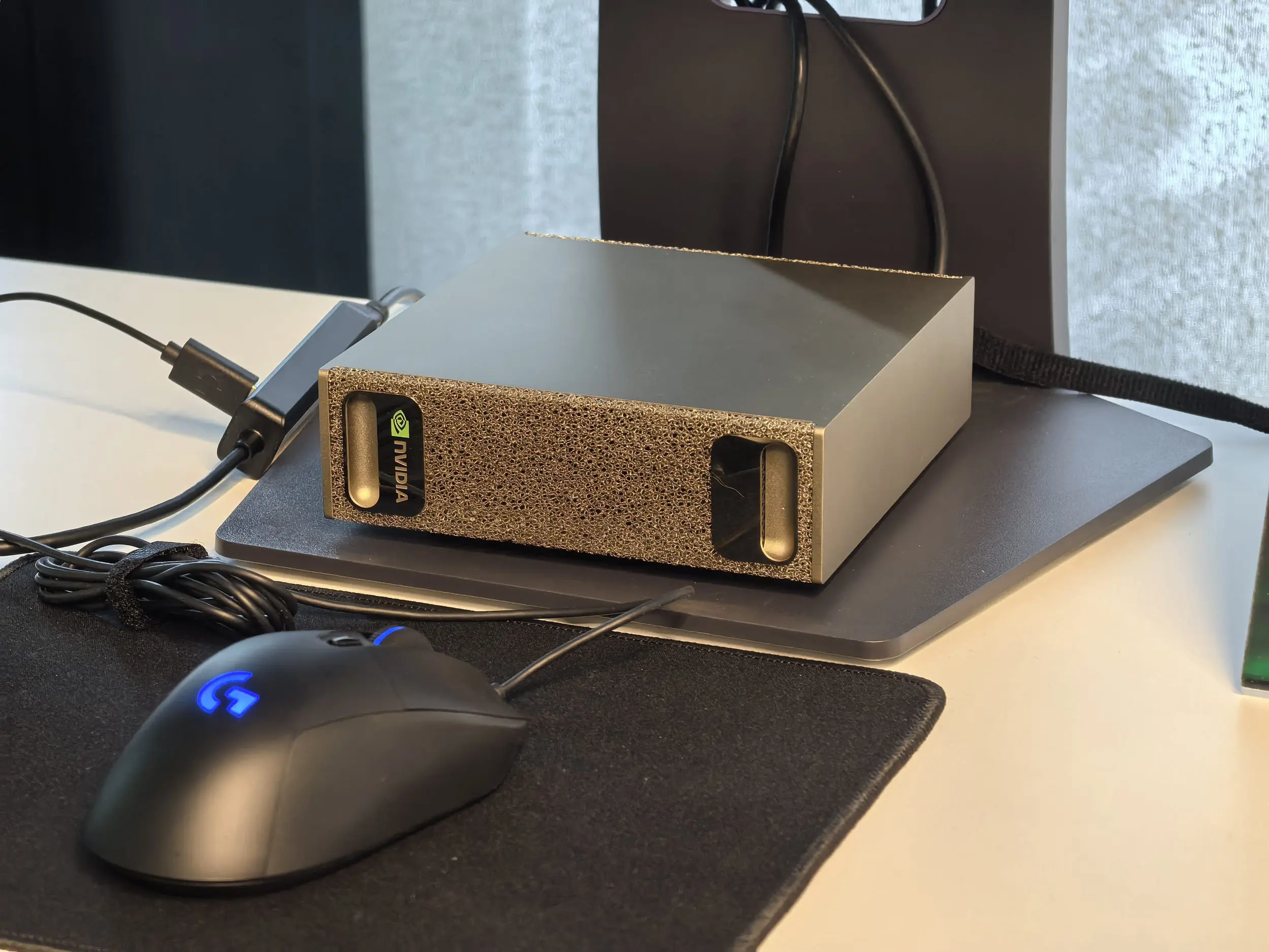 Și chiar dacă nu este gândit pentru gaming, tot la sediul NVIDIA am putut vedea și un DGX Spark la treabă. Este vorba despre un mini supercomputer pentru sarcini AI pe care-l poți lega direct la laptopul sau PC-ul tău pentru a-i crește performanța. Are aproximativ dimensiunea unui sandwich și grosimea a vreo două, astfel că poate fi transportat foarte ușor în aceeași geantă cu laptopul. Iar într-un șasiu atât de mic înghesuie nu mai puțin de 128GB de memorie unificată, alături de un superchip NVIDIA GB10 Grace Blackwell și 4TB de stocare NVMe M.2 cu auto-criptare.