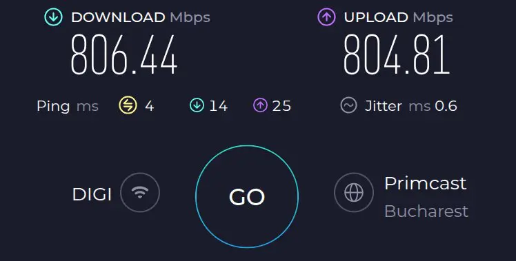 | Living 1 perete cărămidă, cca. 4.5m distanță | 679Mbps Download 488Mbps Upload | 614Mbps Download 412Mbps Upload |