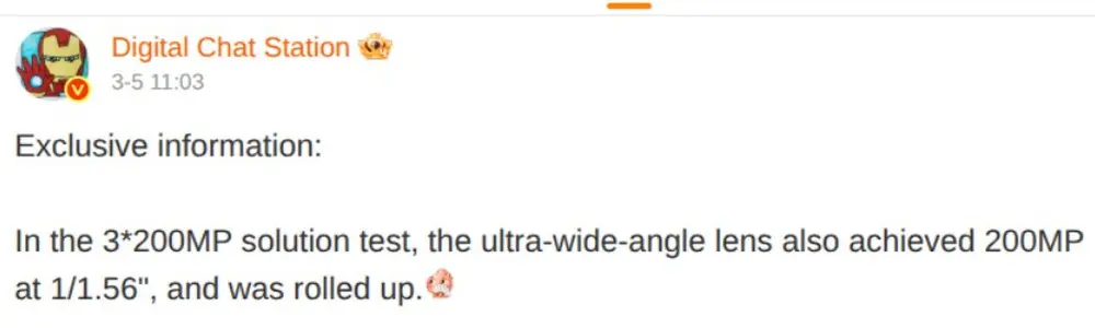 Leak-ul provine de la cunoscutul Digital Chat Station, care susține că producătorul chinez testează un sistem foto neobișnuit pentru următoarea generație de flagship-uri. Conform informațiilor publicate de acesta, smartphone-ul ar putea include trei senzori de 200 MP pentru principalele tipuri de fotografii.