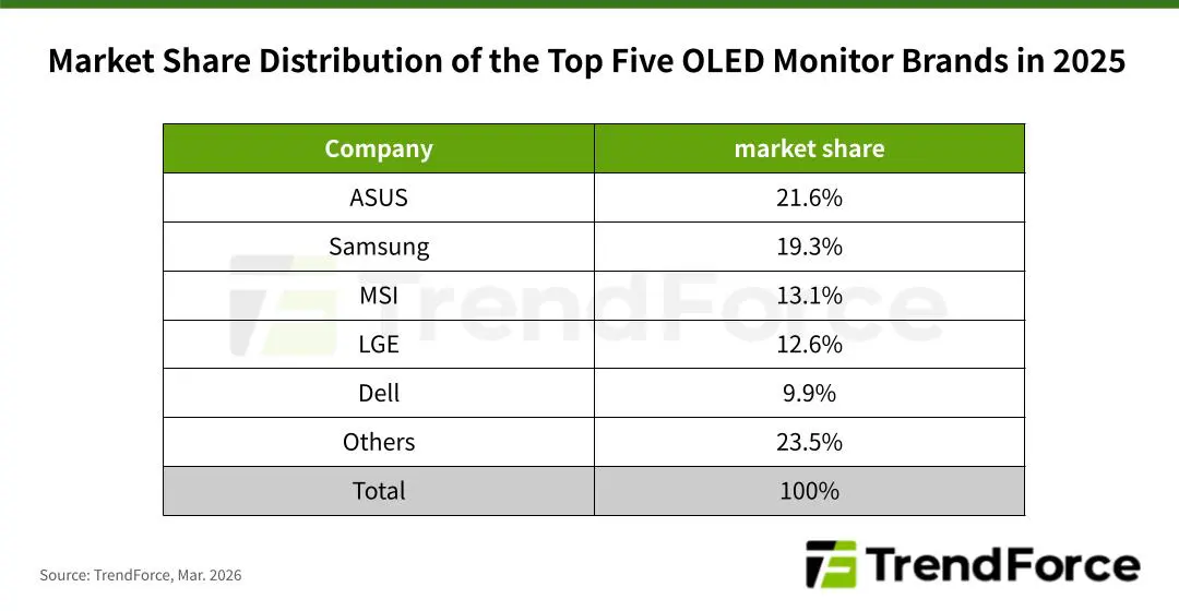 Informația vine de la Trendforce care au analizat atent piața și au venit cu niște concluzii interesante. Comparativ cu 2024, vânzările de monitoare OLED au crescut cu 92 de procente, dar am aflat și câteva detalii interesante. Spre exemplu, cele mai populare modele sunt cele de 27 de inch cu rezoluție QHD, și se pare că lansarea modelelor cu rată de refresh de 280Hz a servit ca un mic boost pentru piață. Dintre marii producători, pe zona de OLED-uri cel mai bine stau cei de la ASUS. Aceștia au integrat panourile atât pe seria Republic of Gamers, dar și în produsele ProArt și ZenScreen, însumând 21.6% din piață.