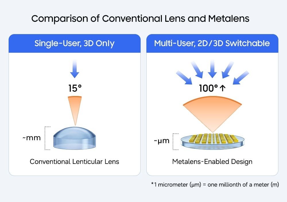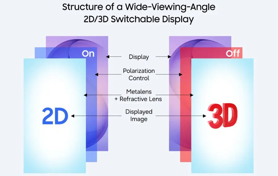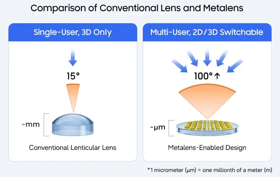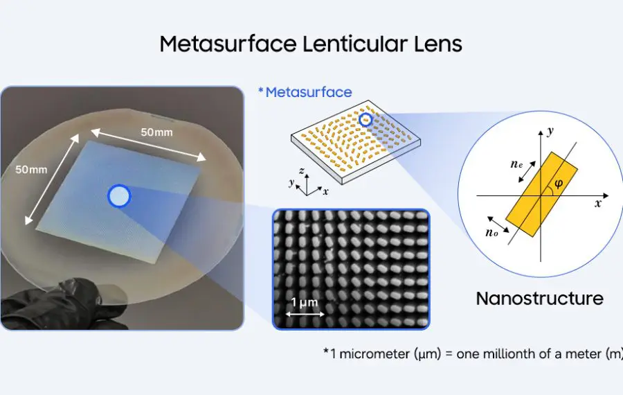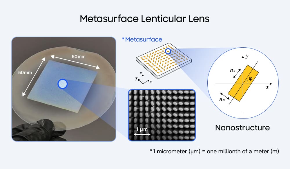 Baza tehnică vine dintr-un studiu publicat în revista Nature, rezultat al colaborării dintre echipa Visual Technology Team din cadrul Samsung și universitatea sud-coreeană POSTECH. Cercetarea descrie o arhitectură de display construită în jurul unui concept numit Metasurface Lenticular Lens, o lentilă lenticulară bazată pe metasuprafețe nanometrice.